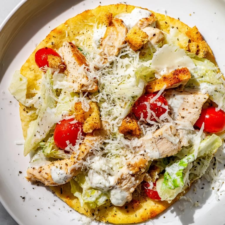 Some nights I use a rotisserie chicken from the grocery store and shave 10 minutes off the total time without compromising flavor one bit. You could also swap the romaine for arugula or baby kale if you want something with a bit more bite, or add crispy bacon if you're feeling it. The recipe is honestly a template—the Caesar chicken and flatbread base is what matters, and everything else is flexible.