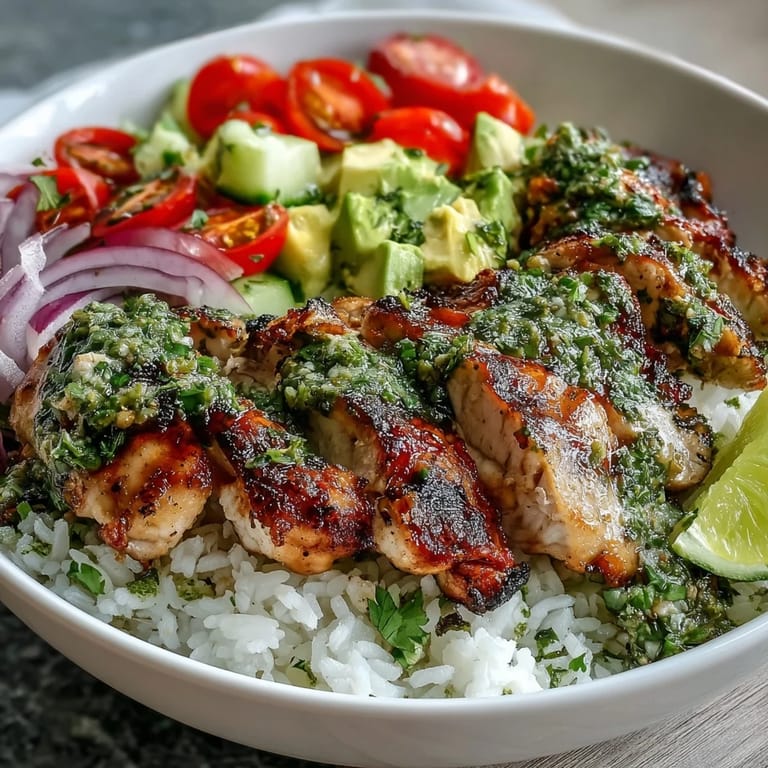 Save to Pinterest There's a specific afternoon when my neighbor appeared at the fence with a jar of homemade chimichurri, still vibrant green and impossibly fragrant. She'd made it for a family gathering and brought me some to try on grilled chicken, and honestly, that single meal changed how I thought about weeknight dinners. The brightness of fresh herbs hitting perfectly cooked chicken over rice felt both simple and somehow celebratory, the kind of food that makes you pause between bites.