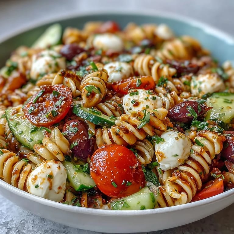 Save to Pinterest The first time I prepared this easy summer pasta salad, the sound of bubbling pasta mingled with the laughter drifting in from the patio. I remember the cool snap of cucumbers and the sharp scent of fresh parsley filling the kitchen as I chopped. It wasn’t a grand occasion—just a craving for something vibrant and zesty on a particularly warm afternoon. I reached for whatever vegetables were lingering in the fridge and found myself improvising with a splash of Italian dressing. The salad came together so quickly that it felt effortless, but the flavors were anything but ordinary.
