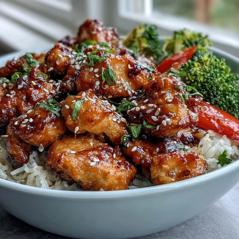 Save to Pinterest There's something about the smell of garlic hitting hot oil that makes you stop whatever you're doing and pay attention. I discovered this honey garlic chicken bowl on a Tuesday night when I had three things in my kitchen: chicken thighs, a nearly empty honey jar, and the kind of hunger that doesn't have time for complicated plans. What started as improvisation became the meal I find myself craving on days when I need something that tastes impressive but doesn't demand much fuss.