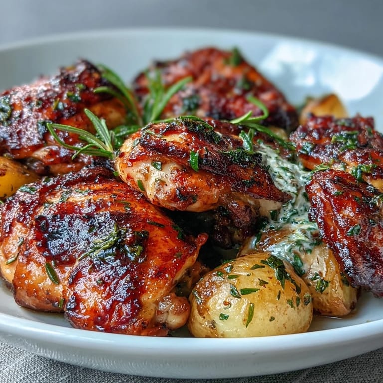 Save to Pinterest There's something about the smell of lemon and rosemary hitting hot chicken skin that makes you feel like you've stepped into someone else's Sunday dinner. My neighbor brought this dish to a spring potluck years ago, and I watched people actually pause mid-conversation to eat it—real, genuine pauses. Since then, it's become my go-to when I want to impress without spending the entire day in the kitchen. The golden skin, the tender potatoes catching all those herb juices, the way the whole thing comes together in just over an hour—it feels restaurant-quality but genuinely simple to pull off.