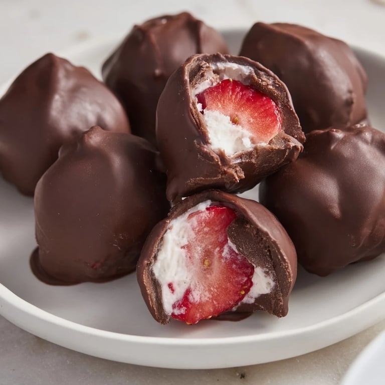 I've experimented with these enough to have learned what harmonizes and what clashes. Vanilla and strawberry are the obvious pairing, but I've had success swapping in almond extract for a subtly different note, or adding a tiny pinch of cardamom to the yogurt for something unexpected. The chocolate coating is flexible too—dark chocolate leans into sophistication, while milk chocolate softens everything and makes them taste closer to strawberries and cream.